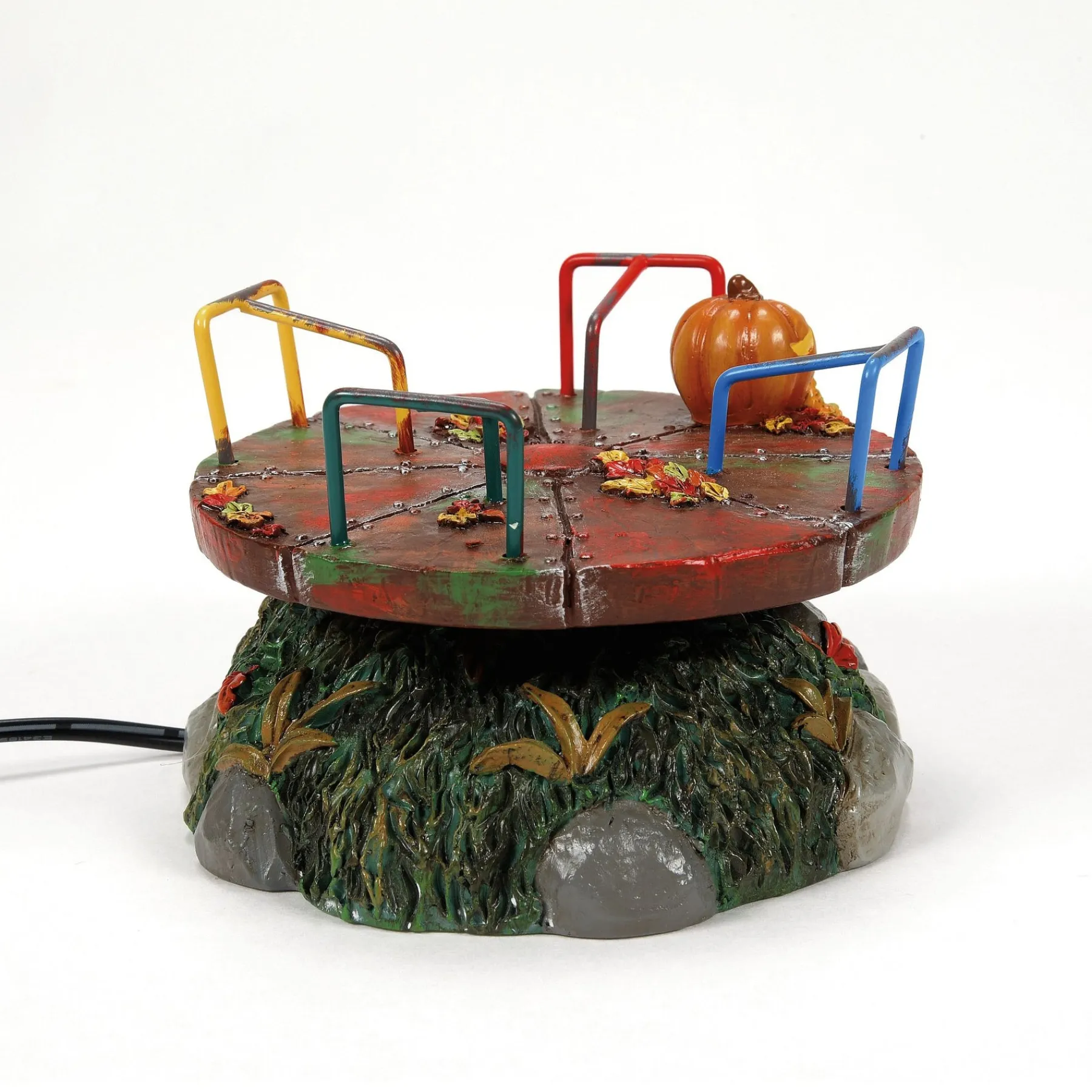 Even the jack o’ lantern cannot hold his breakfast when spinning on our frightfully-nostalgic scary-go-round.