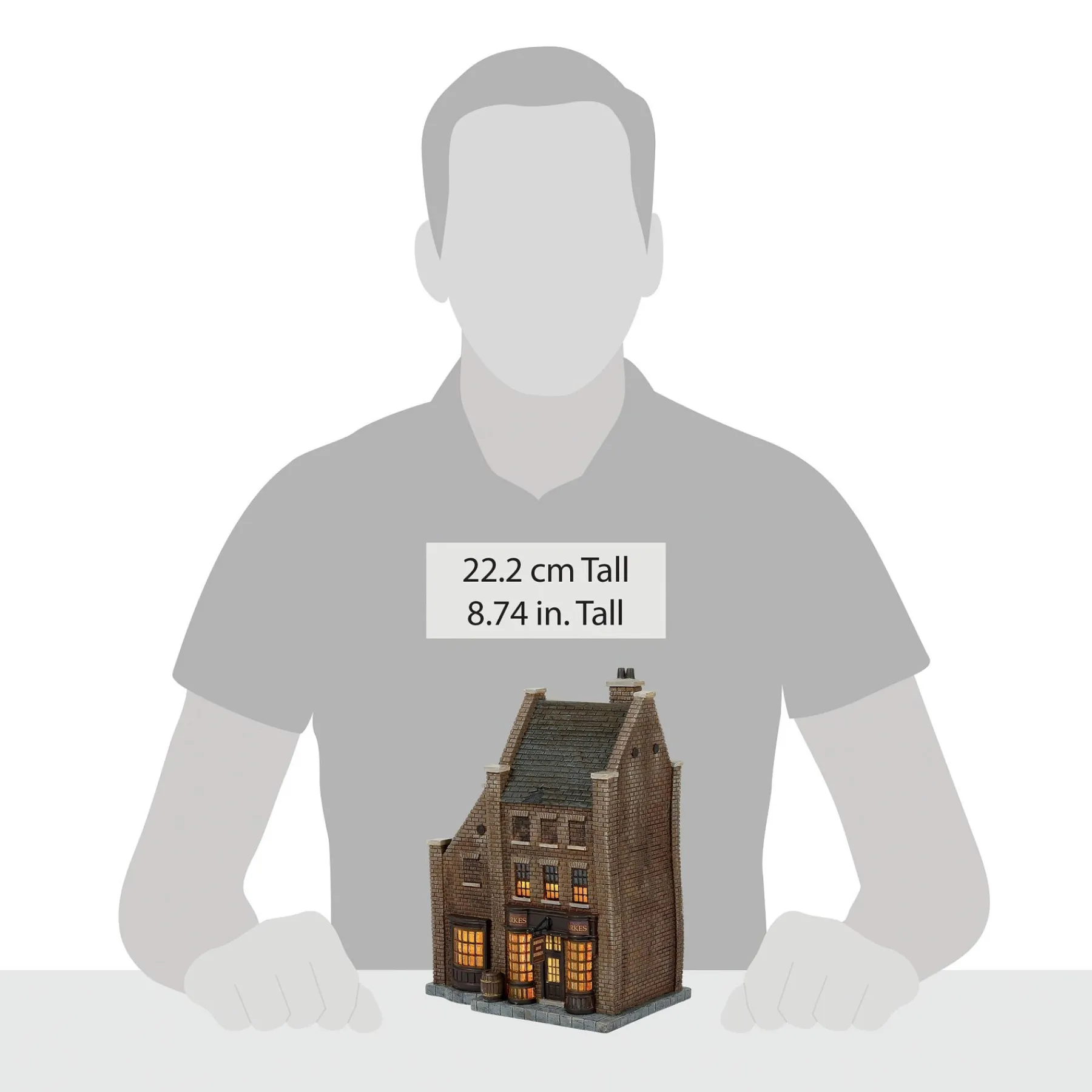 - Hand crafted and hand painted resin lit building.