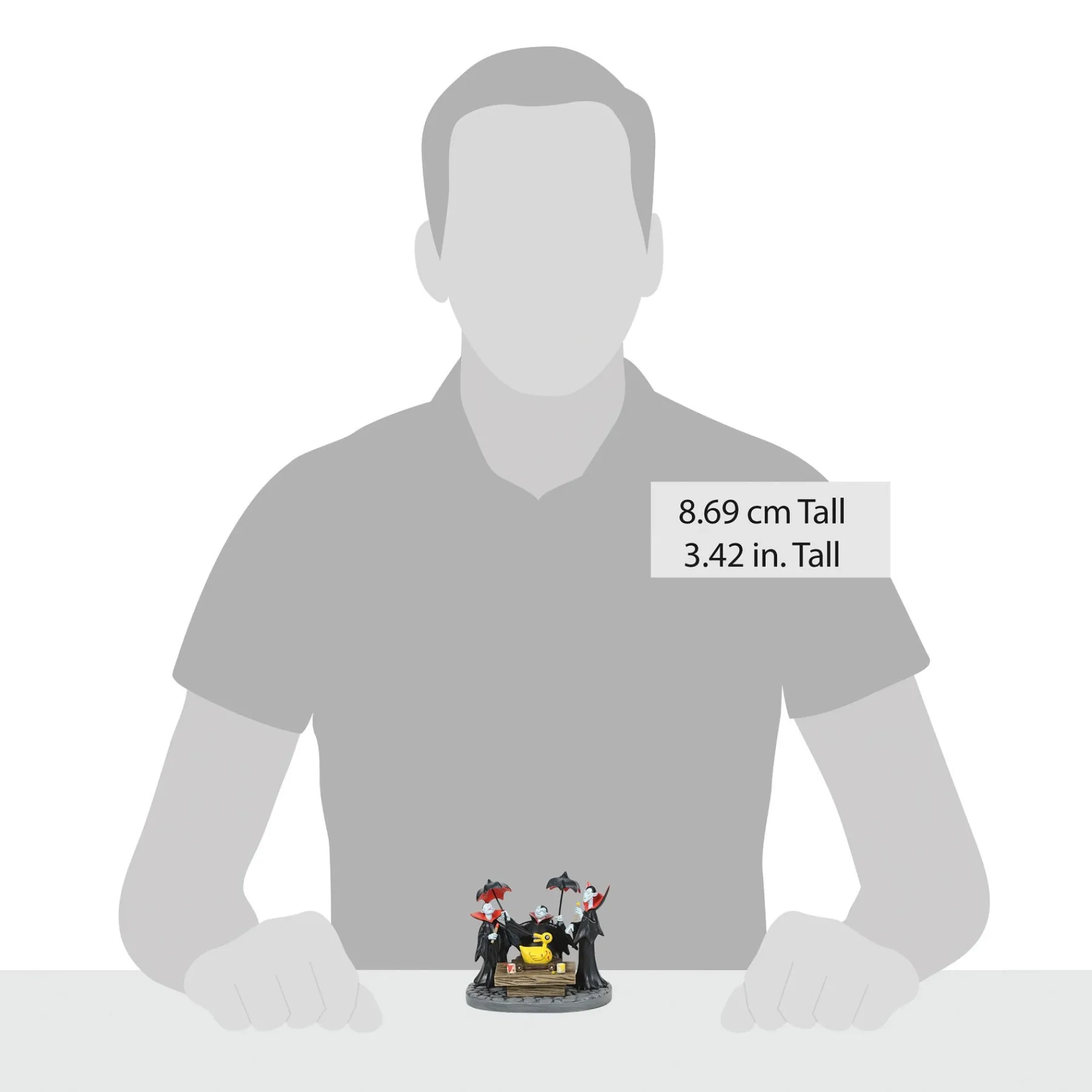 Holding umbrellas and choking back laughs, the Vampire Brothers prepare the duck. Taking a spooky twist on Christmas gifts, the brothers create the sinister squeaker for evil escapades. Place it in your village and watch as it chases after children!