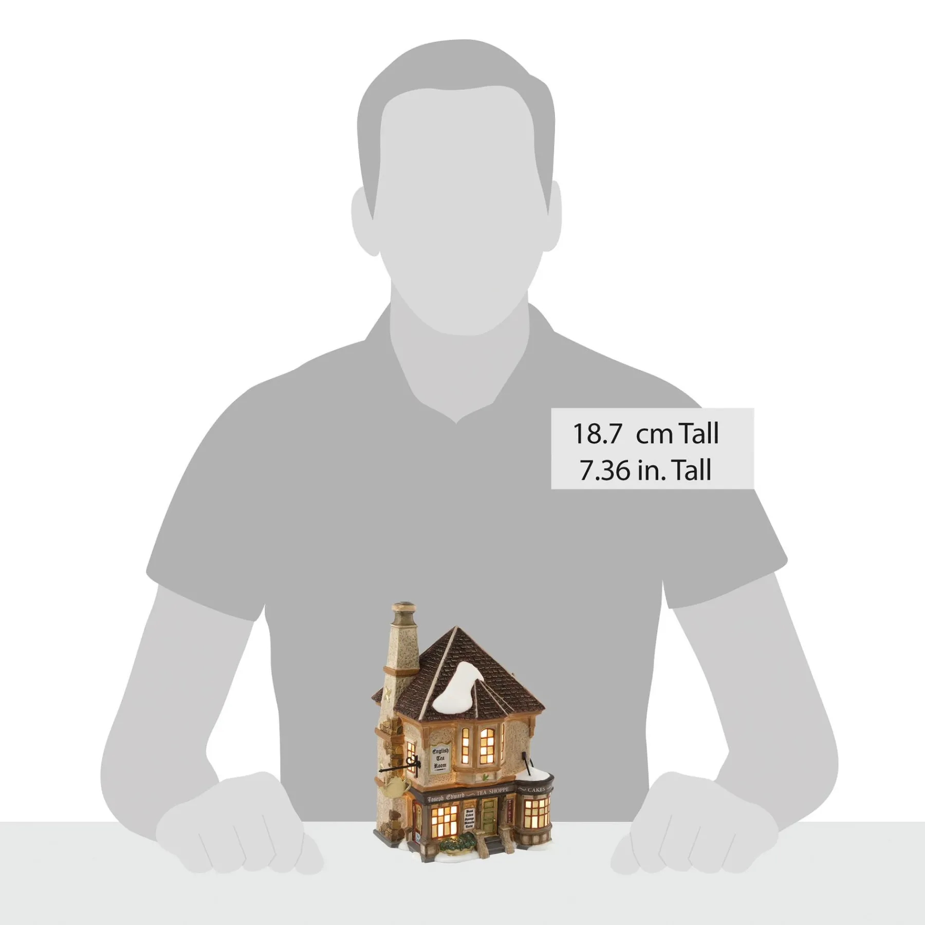 During the 1800s, it was popular to speculate which clipper ship carrying tea from the Far East would arrive first in London. The side of our Joseph Edward Tea Shoppe includes a sign announcing the race updates. Hand painted porcelain with cord & bulb.