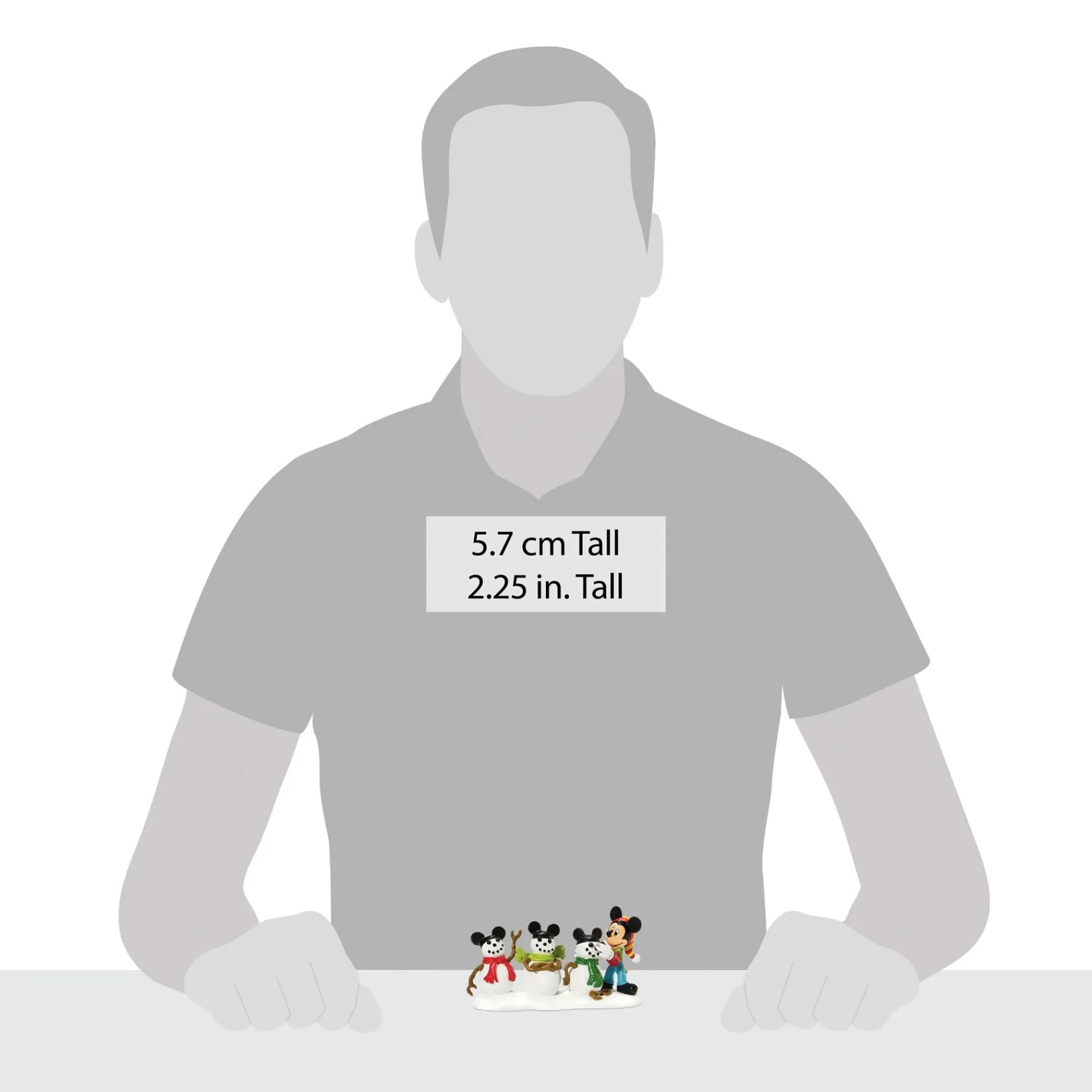 This hand-painted resin accessory is classic Mickey – dressed in a striped stocking cap and neck scarf, Mickey is putting the final touches on his three snowmen. Instead of a tall silk hat each snowman dons the iconic Mickey’s Ears hat.