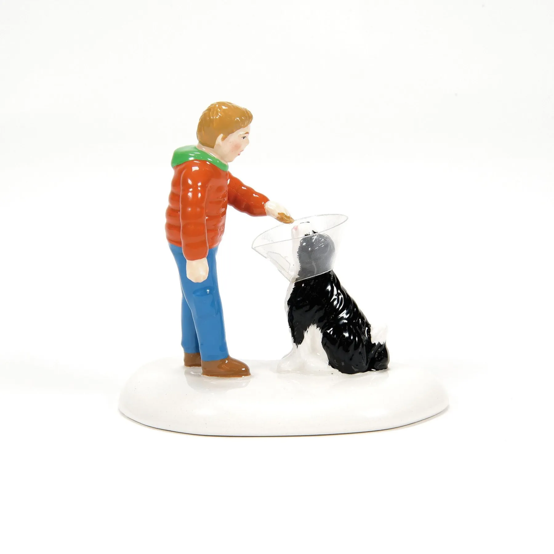 A young boy convincing his puppy that they can, indeed, wait 2 more days to get that cone removed. It will be the best Christmas ever!